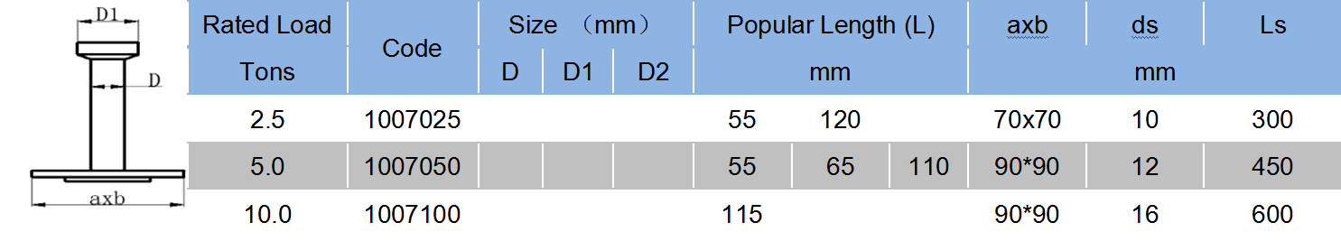 • The Plate Lifting Anchor is recommended for all large thin reinforced slabs,which are to be lifted at right angles, and where the standard lifting anchors will not fit in the slab.They are also used for demoulding panels.