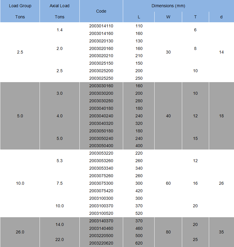 • * Safety Factor is 3:1.