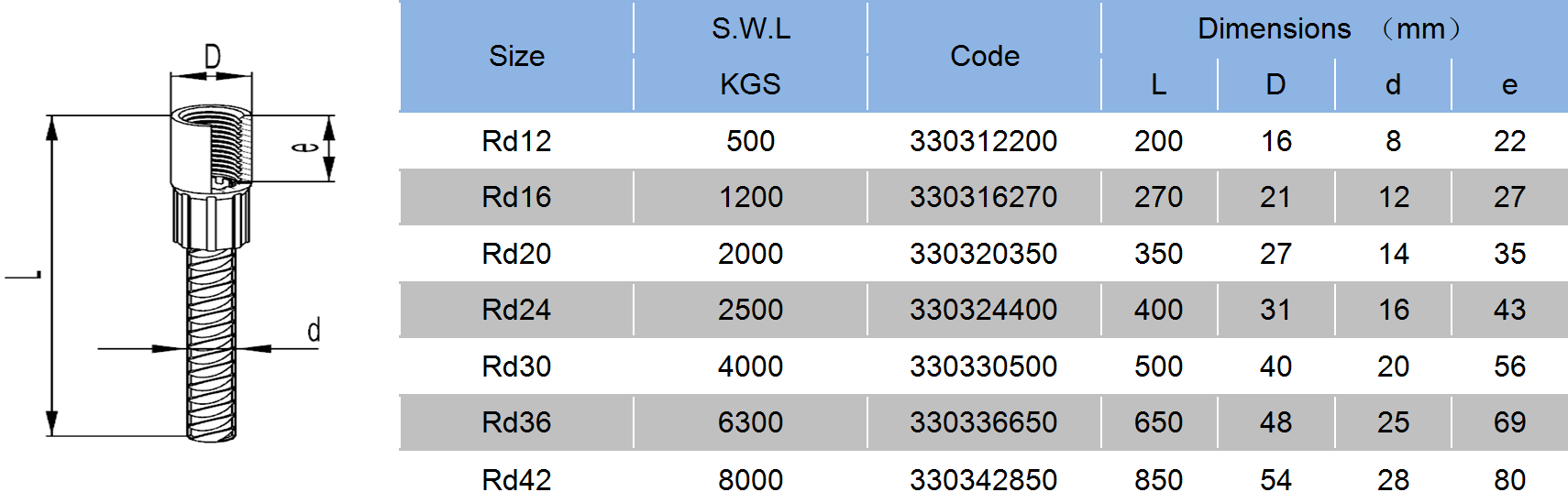 Straight Rebar Socket Anchor